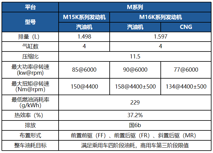 技術成熟、可靠性高、適配性強,滿足乘用車四階段、商用車三階段油耗限值和國6b排放法規。發動機兼顧汽油機、CNG機型,且滿足FF、FR、MR等不同布置形式;配置豐富,可滿足不同車型需求。2023年仍有25款機型正在開發,在商用車汽油機市場處于絕對主力地位。技術特點